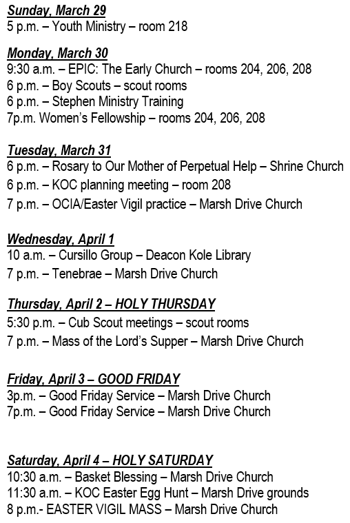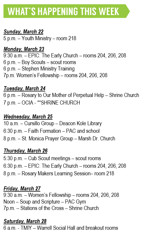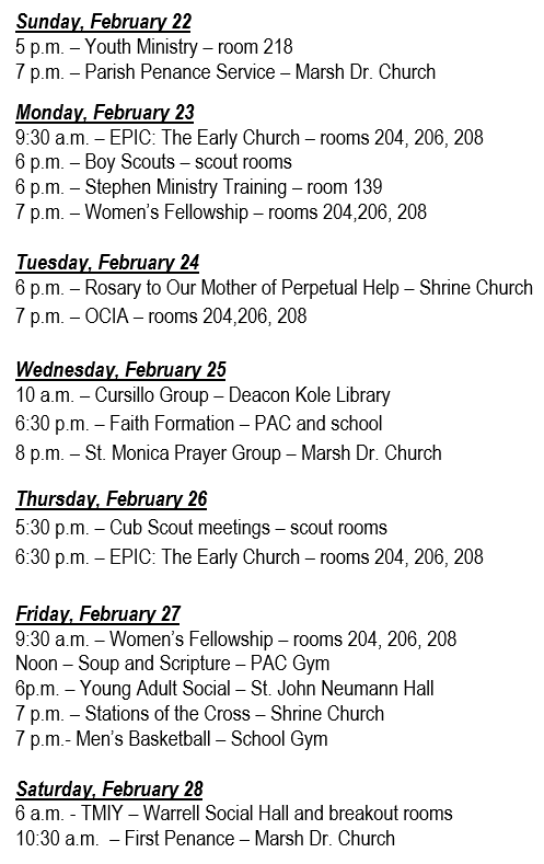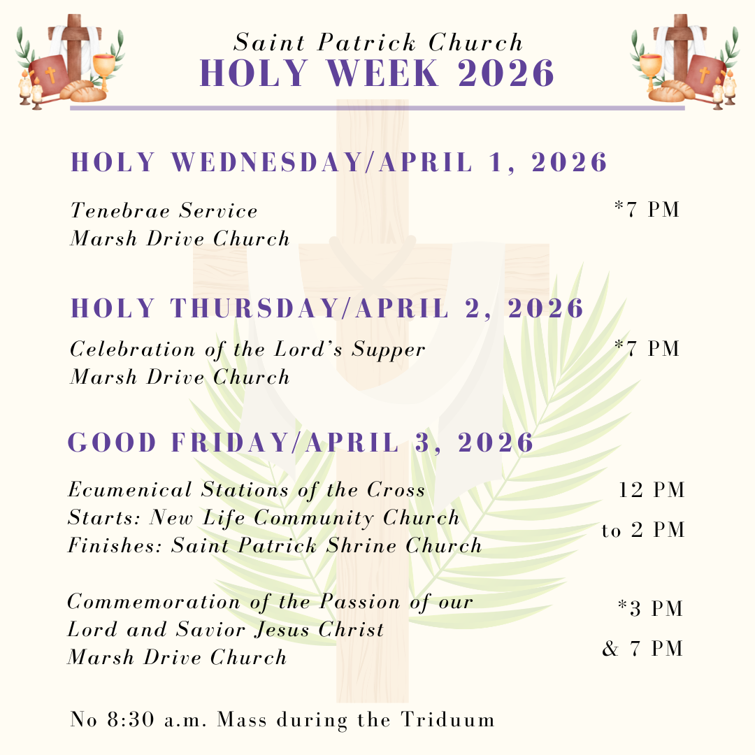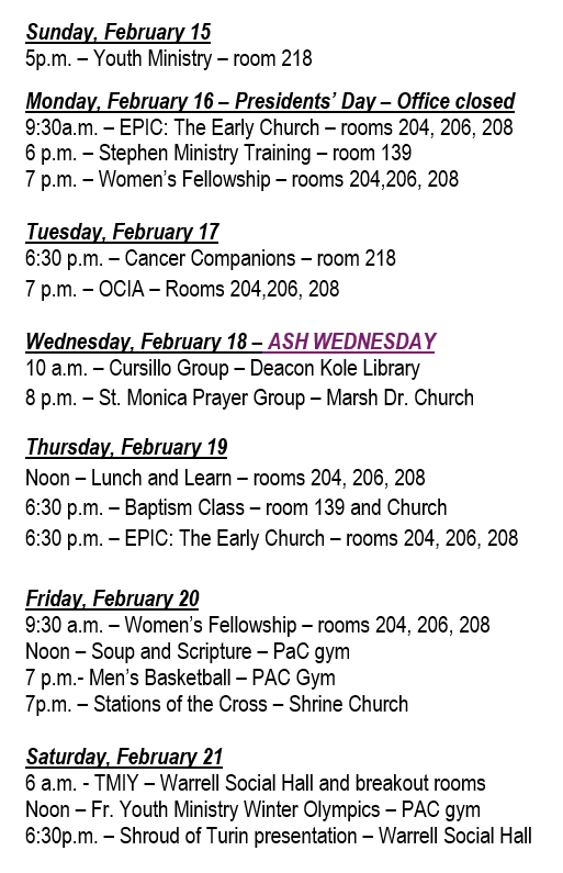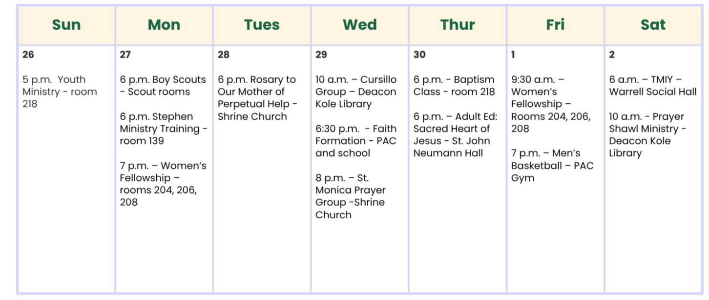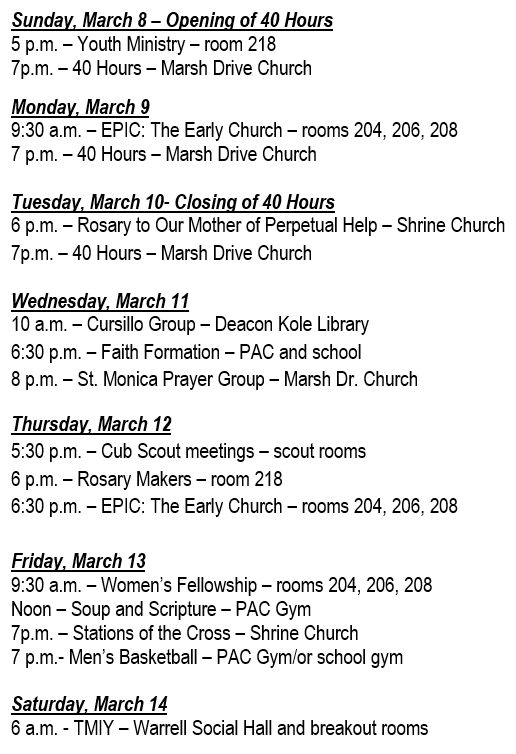 For more information on upcoming Recurring events, visit our parish news section and SCROLL.